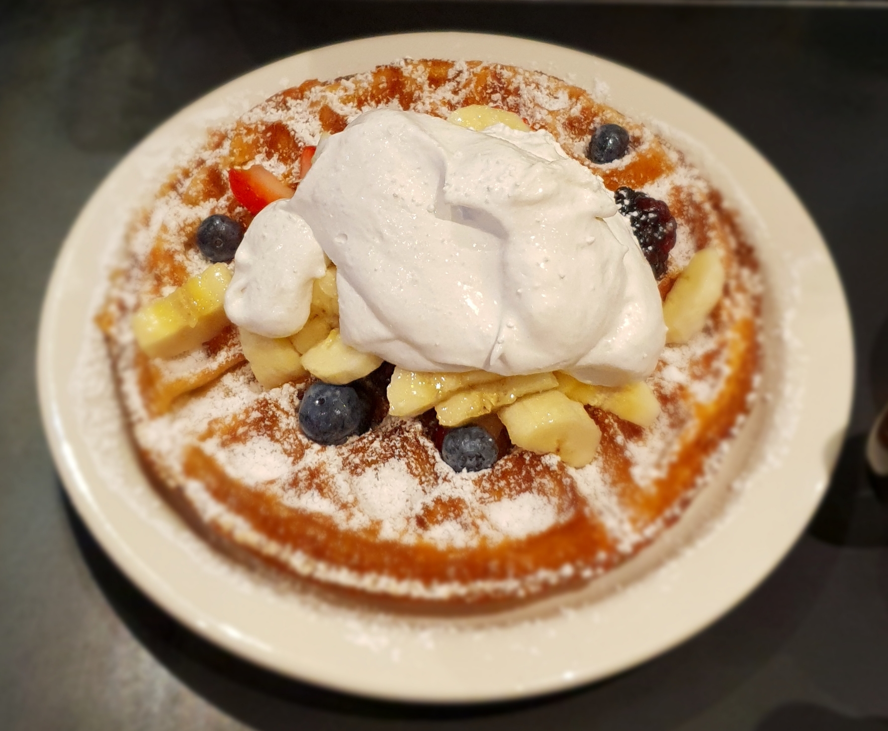 Champs Diner is een leuk veganistisch zaakje in jaren 80 diner-stijl. Het voelt alsof je terug gaat naar het Rock-‘n-roll-tijdperk. Ze hebben er van alles, van breakfast burrito’s en milkshakes tot fluffy pannenkoeken. We hebben hier ontbeten met wafels met slagroom, fruit en koffie. Het gekke is dat je helemaal niet proeft dat het veganistisch is.