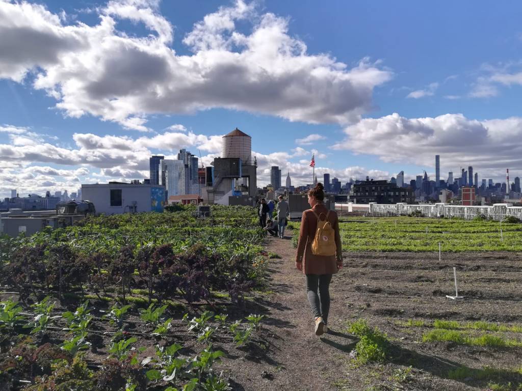 Op zaterdagmiddag zijn we naar een rooftop farm geweest en dan zul je wel denken een boerderij in New York? Ja echt. Brooklyn Grange is eigenlijk een grote moestuin op het dak van een groot industrieel gebouw. Ze verbouwen er groente. Die groente verkopen ze tijdens hun open huis op zaterdag, op markten en aan restaurants. Tegenwoordig houden ze er zelfs bijen en kippen. Het is zo mooi om te zien, je loopt door de grote moestuin met de skyline van Manhattan op de achtergrond!