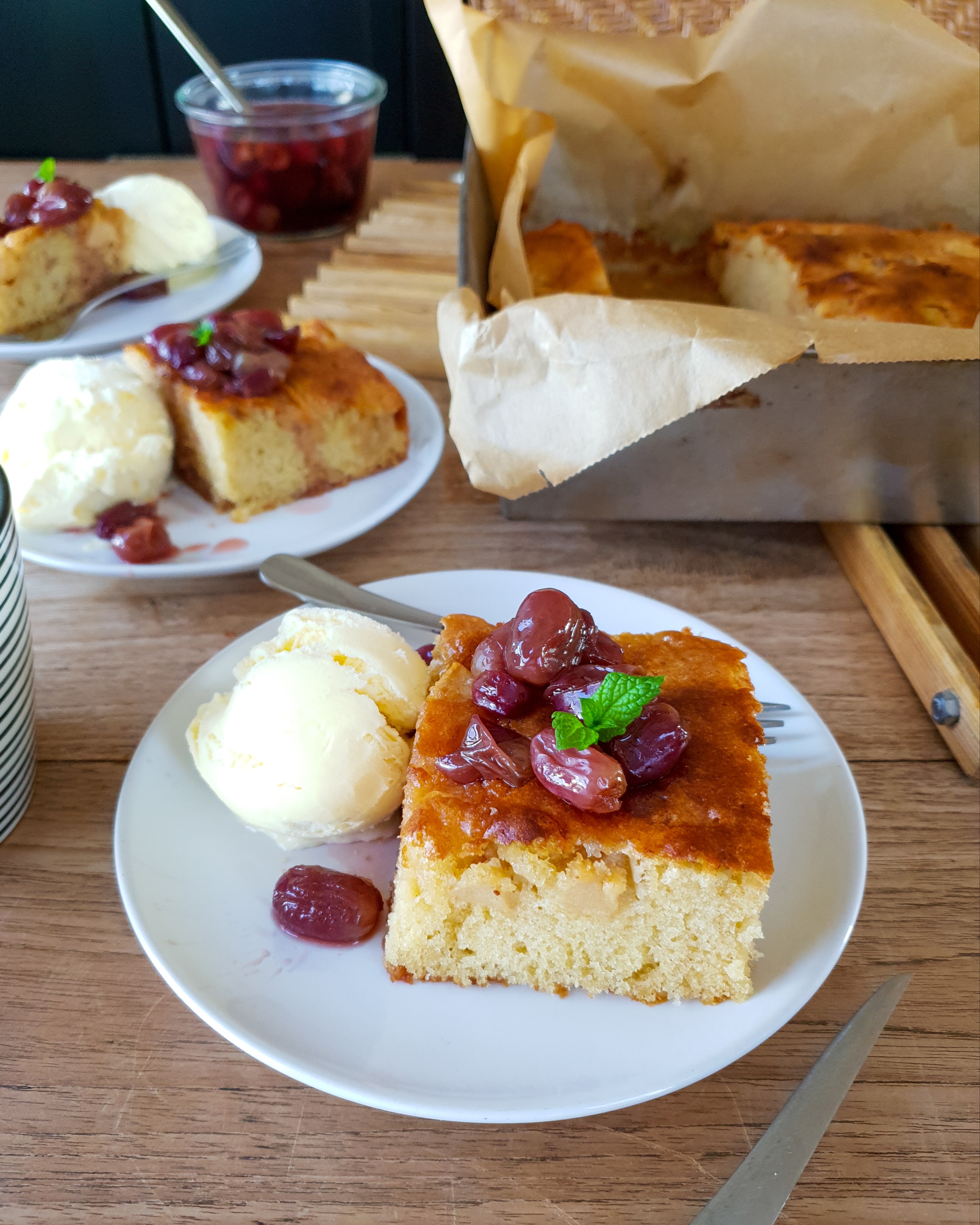 Wat is er nou heerlijker dan een nog warme plak appelcake met een bolletje roomijs op een heerlijke warme dag. Het is heel geschikt als toetje maar als je het roomijs vervangt door slagroom is het ook heel geschikt als lekkernij voor bij een bakje thee of koffie.