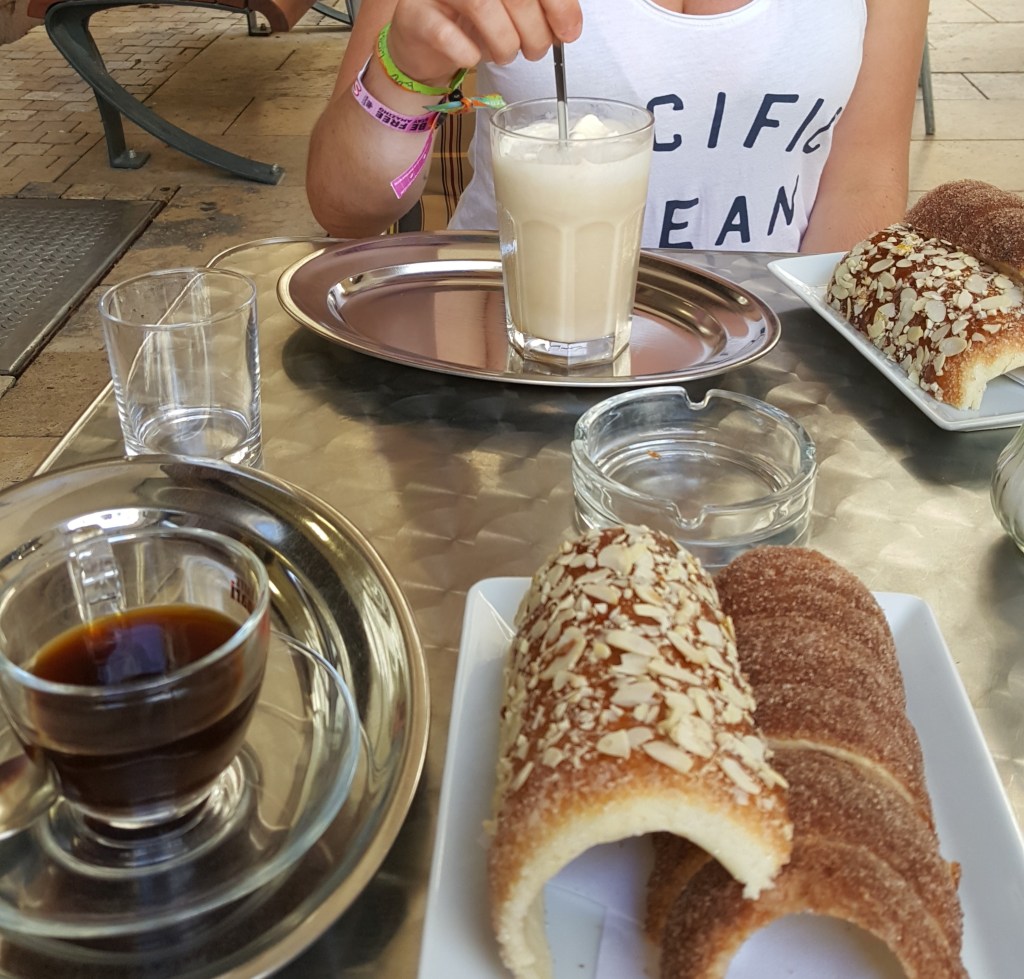 Na de klim naar het uitkijkpunt Citadella werd het weer de hoogste tijd voor een bakje koffie met iets lekkers. We gingen koffie drinken bij Molnar’s kurtoskalács. Een koffiezaakje waar ze alleen de traditionele lekkernij kurtoskalács verkopen. Ze maken er deeg en draaien het om een stuk hout. Daarna bakken ze het al draaiend boven een grill of barbecue. Waarna ze het nog warm door de kaneelsuiker heen rollen. Het deed me een beetje denken aan een kaneelbroodje. Soms rollen ze het ook door chocolade, kokos, walnoten, amandelen of vanillesuiker. Een erg leuk gerecht om uit te proberen.