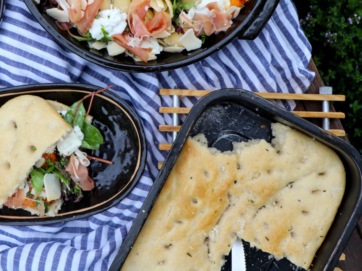 Dit brood is heerlijk wanneer het vers uit de Green EGG komt. Je kunt het beleggen met prosciutto di parma, gegrilde perzik en mozzarella of je eet het met een lekkere pastasalade.