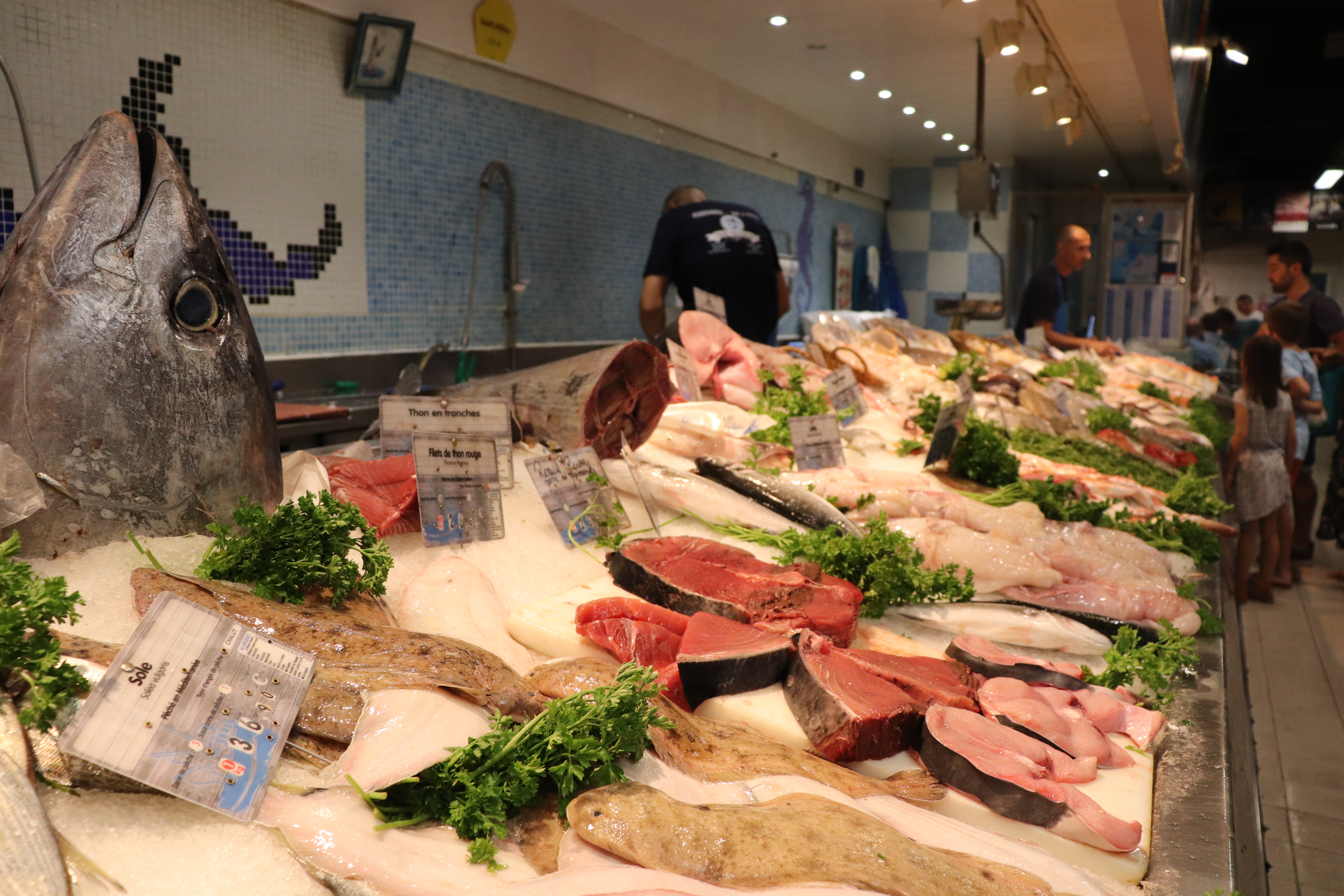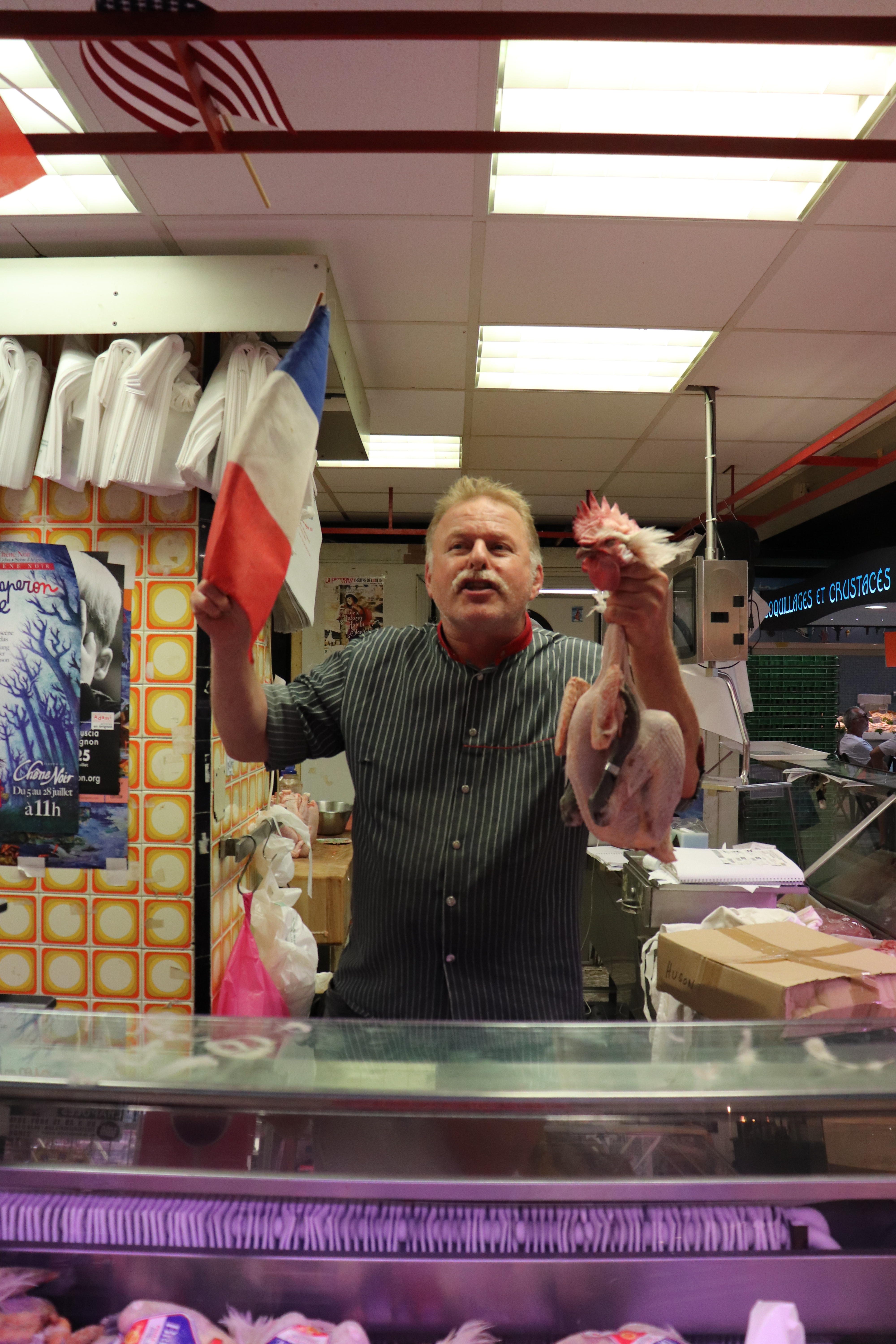 Elke dag tussen zes uur ‘s morgens en één uur ‘s middags zijn er 40 kraampjes in de Halles d’Avignon waar je heerlijk eten kan kopen. Verschillende kramen met olijven, vlees, vis, groenten en kaas. Er zijn ook kraampjes waar je kan eten of een heerlijk glaasje wijn kan drinken met allemaal Fransen wanneer die lunchpauze hebben. Veel mensen in deze markt spreken goed Engels. Wij nemen wat heerlijke vlees en salades mee zodat we vanavond kunnen barbecueën.