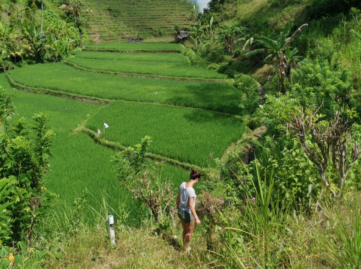 Een meneer die we aanspraken bij Amrita villa & cafe bood ons aan om ons een tour te geven door de rijstvelden. We liepen langs kleine boerderijen, schitterende uitzichten en kleine hazenpaadjes. Echt de plekken die je zelf nooit zou hebben gevonden. Onderweg laat hij ons de verschillende planten zien die er groeien, zoals papayabomen, kokospalmen en kruidnagelbomen. Hij verteld over de cultuur en de manier van leven. Een hele interessante wandeling.