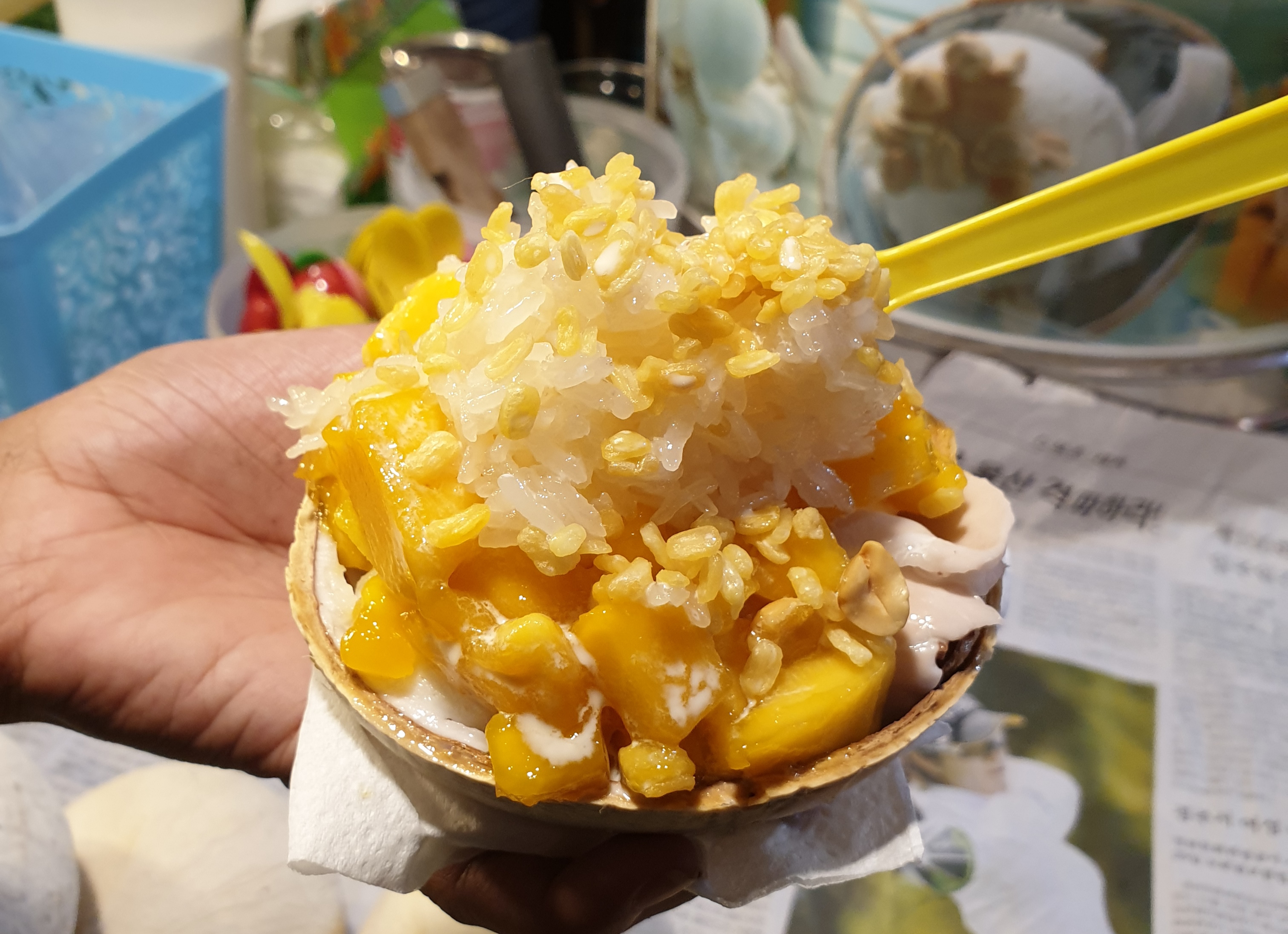 Tidtee, een Thais meisje die ik eerder heb ontmoet, neemt me mee naar de trainmarket. Ze waarschuwt me dat het er vaak druk is met Chineese toeristen en dat klopt. Zodra we de markt op lopen is het er stampvol met mensen. Gelukkig blijkt dat vooral vooraan te zijn en als we iets verder lopen is het prima te doen. Ik zie dat het mogelijk is om durian te proeven, die kans laat ik niet aan mijn voorbij gaan. Het ruikt naar zweetsokken, maar de smaak is eigenlijk best wel lekker. Het is stevig van buiten en romig van binnen, bijna puddingachtig. We eten heerlijke noedelsoep, gefrituurde octopus en als toetje mango sticky rice met kokosijs. Zelfs hier in Thailand begint speciaal bier al aan populariteit te winnen en we proberen een aantal lokaal gebrouwen biertjes uit.