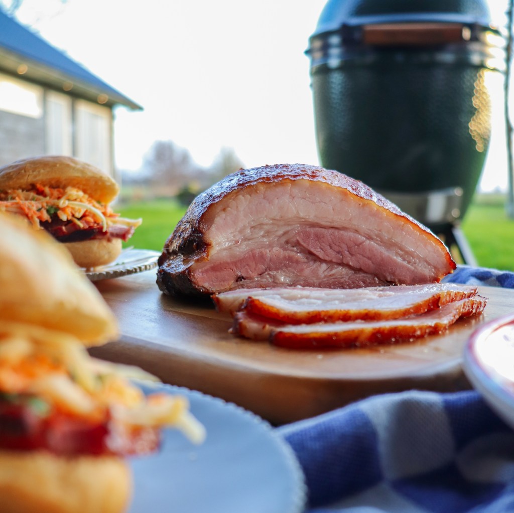 Zet daarna de Green EGG aan op 100 graden met de confEGGtor ertussen. Gaar de buikspek voor 4 uur op 100 graden.