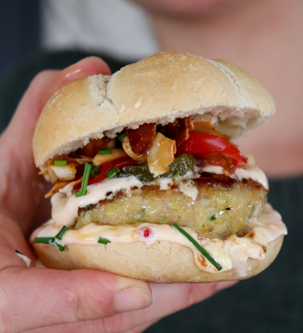 Afgelopen herfst ben ik 3 weken in Indonesië geweest. Het eten is daar heerlijk: nasi, sate en gado gado. Het eten is altijd heerlijk gekruid. Daarom heb ik dit broodje kipburger gemaakt. Geïnspireerd op de Indonesische keuken. In de kruidenmix van Simply Spices zit o.a. kokos, gember en komijn en in de pinda crumble zitten hele kruiden waardoor elke hap je het gevoel geeft weer even terug te zijn in Indonesië.