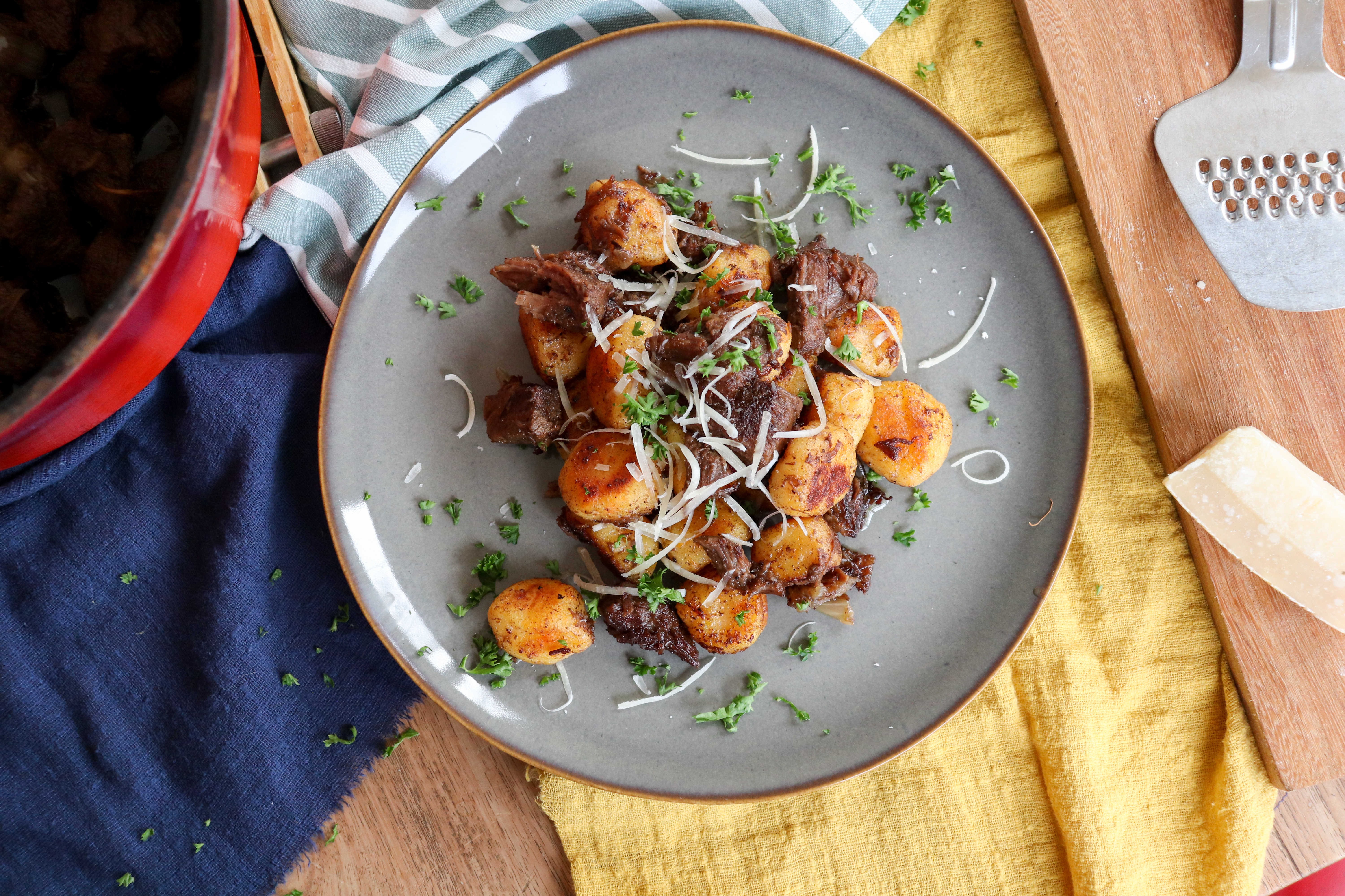 Wat is er nou meer Hollands dan hutspot met klapstuk? Vandaag maken we een Italiaanse variant op dit heerlijke Hollandse gerecht door gnocchi van de hutspot te maken. Het stoofpotje kan ook perfect op de barbecue gemaakt worden. De barbecue zorgt voor nog meer smaak aan het stoofvlees.