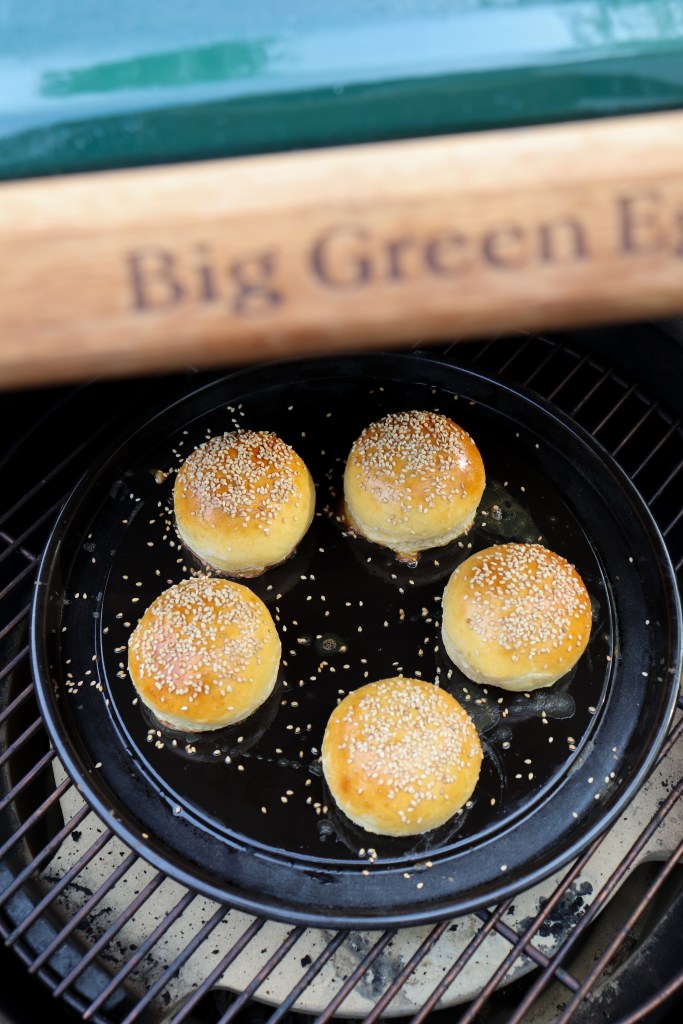 Zet ondertussen de Big Green EGG aan met de convEGGtor ertussen. Zorg ervoor dat de temperatuur tussen de 180 en 200 graden is. Bak de broodjes ongeveer 20 minuten of tot ze mooi goudbruin zijn.