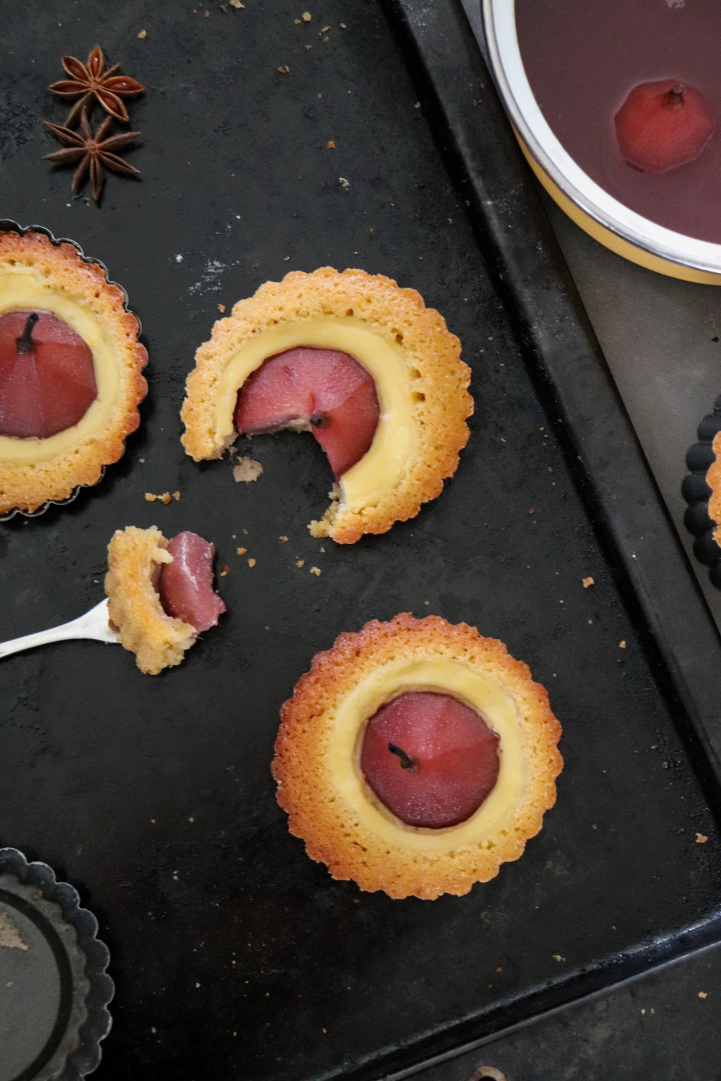 De tijd van stoofpeertjes is aangebroken. De boom hangt weer vol met peertjes. Zelf houd ik niet zo van stoofpeertjes bij de warme maaltijd. Ik verwerk ze liever in een cake, taart of lekker door de yoghurt als ontbijt. Vandaag maken we kleine stoofperentaartjes met banketbakkersroom.