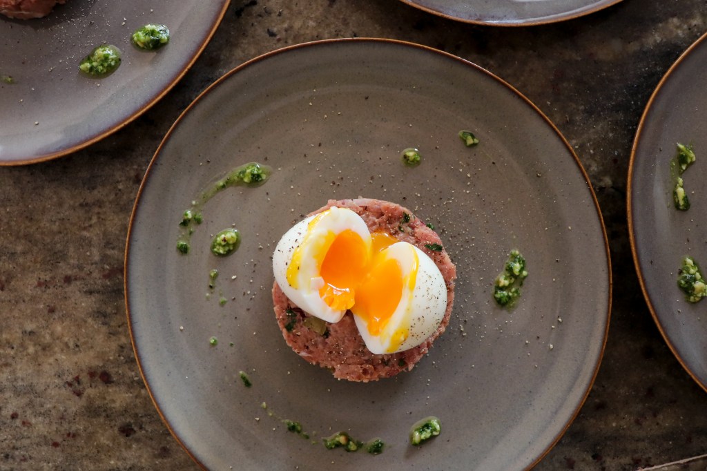 In plaats van een zacht gekookt eitje kun je ook de eieren aanvriezen en daarna pellen. Het eiwit blijft zacht, maar het eigeel word wel stevig. Perfect voor op je steak tartaar.