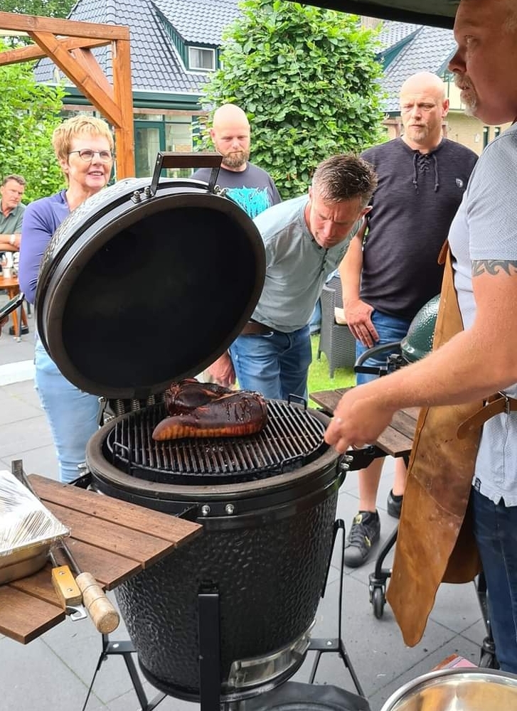 Steek de Green EGG met de convEGGtor erin aan en zorg dat hij op een constante temperatuur van 100 graden komt. Leg de tong op de barbecue en laat hem 6 uur op de barbecue liggen. Hij zal erg donker worden aan de buitenkant, maar dat is niet erg.