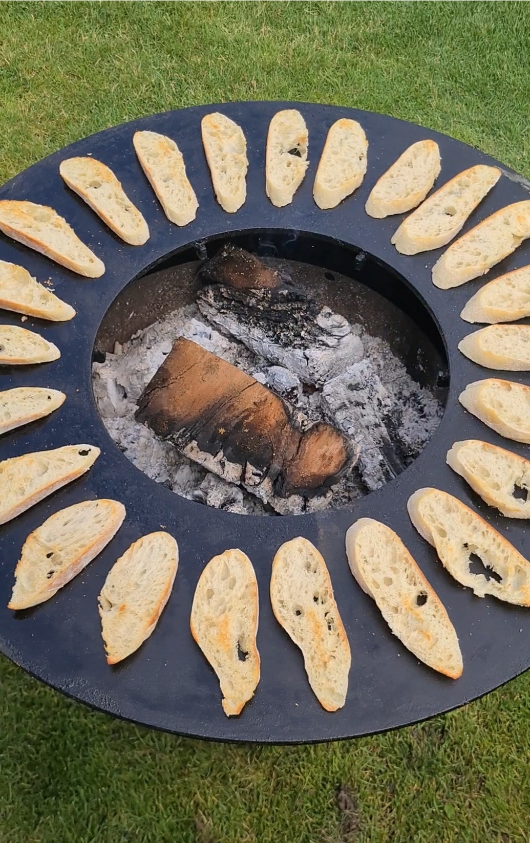 Snijd het stokbrood in lange dunne plakken en toast ze kort op de barbecue of in de oven tot ze knapperig zijn.