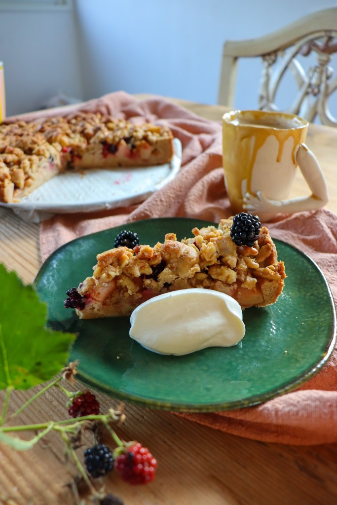 In ons pop-up restaurant Lekker Dichtbij hebben we vorige zomer heerlijke taarten geserveerd. Omdat het nu niet meer mogelijk is om ze bij ons te komen eten heb ik het recept voor jullie uitgewerkt zodat iedereen zelf deze heerlijke taarten kan maken. Vandaag maken we de appeltaart met bramen en walnoten. Op dit moment hangt onze appelboom vol appels en de bramenstruiken vol bramen. Een perfect moment om deze heerlijke taart te bakken.