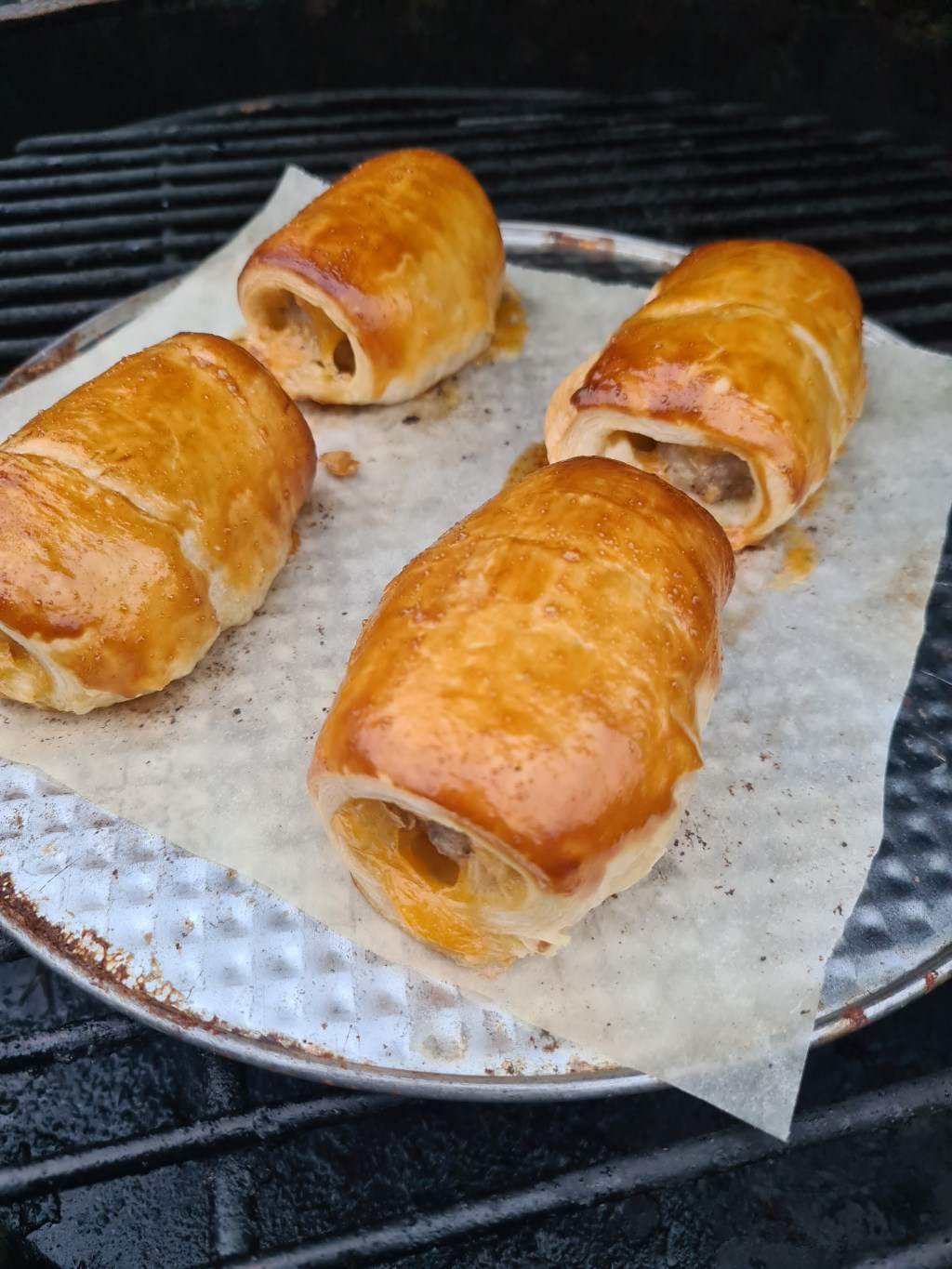 Bak de saucijzenbroodjes tot ze mooi goudbruin zijn.